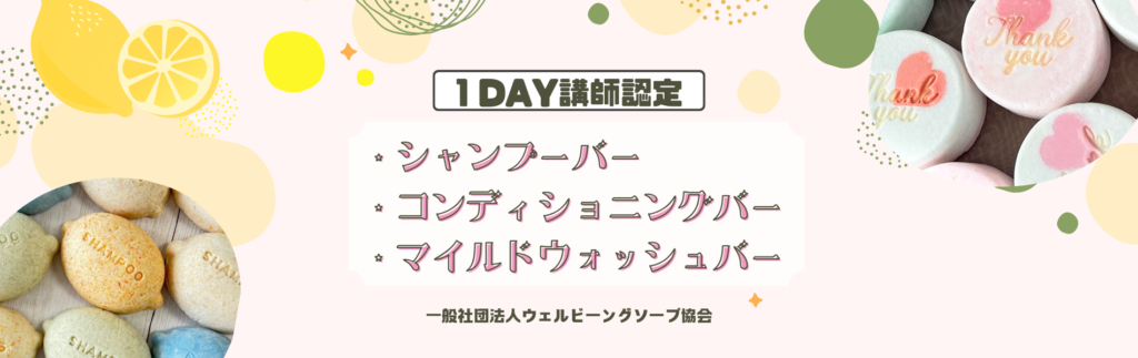 通常完成までに1カ月かかる石けんが1日でできる特別レシピで体験できます。協会の講師認定も受けられます。
